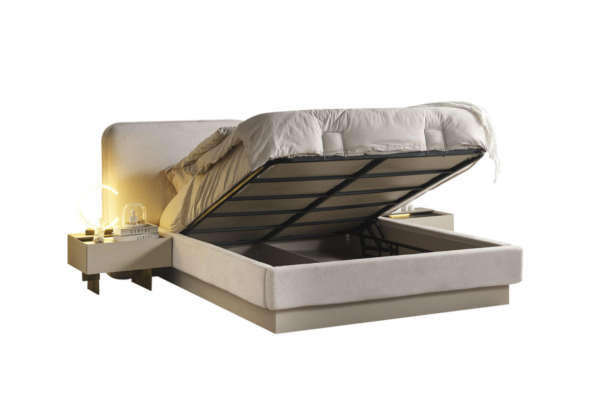 Üründe metal ayak kulanılmıştır. Yatak başlığın ön kısmı kumaş kullanılmıştır. Kullanım kolaylı amacı ile kapaklarda yavaşlatıcı mekanizma uygulanmıştır. |
